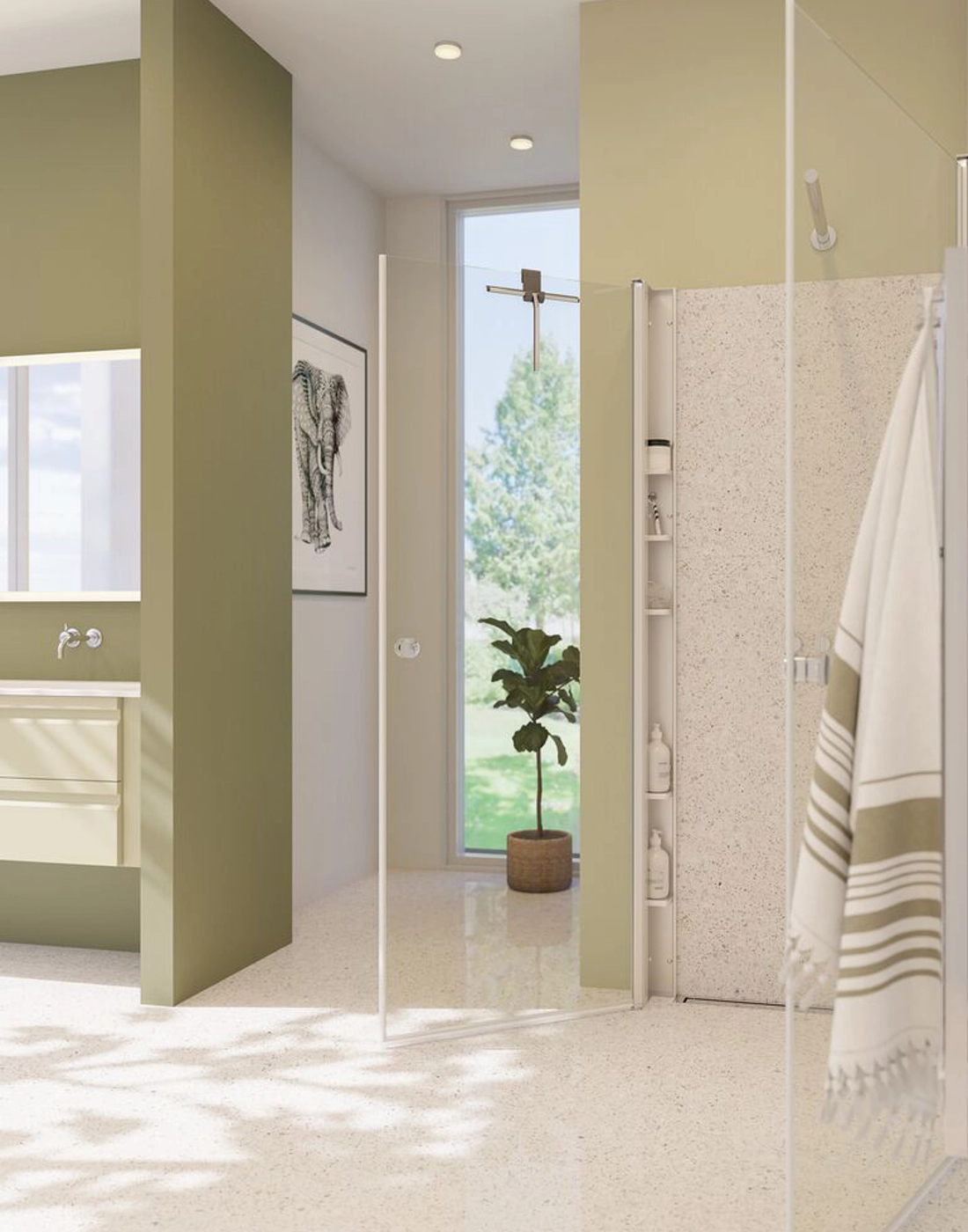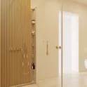 Dansani Tower ist eine innovative Lösung, die außergewöhnlichen Stauraum in der Dusche bietet, ohne Kompromisse bei der Ästhetik einzugehen. Dieses intelligente Aufbewahrungssystem lässt sich nahtlos mit den Match-Türen und -Wänden von Dansani kombinieren, um eine zusammenhängende und stilvolle Duschlösung zu erzeugen. Tower verfügt über 5 herausnehmbare Böden, die sich perfekt für die Organisation der Produkte und Pflegeprodukte eignen, die Sie in Ihrer Dusche verwenden. Um Platz für den Tower zu schaffen, wählen Sie einfach eine 10 cm schmalere Wand oder Tür. Dansani Tower ist die ideale Lösung für alle, die den Platz in ihrer Dusche optimieren möchten, ohne Kompromisse bei Stil und Funktionalität einzugehen. Mit Tower erhalten Sie sowohl praktischen Stauraum als auch ein elegantes Duscherlebnis, das für Wohlbefinden und Ordnung in Ihrem Badezimmer sorgt.