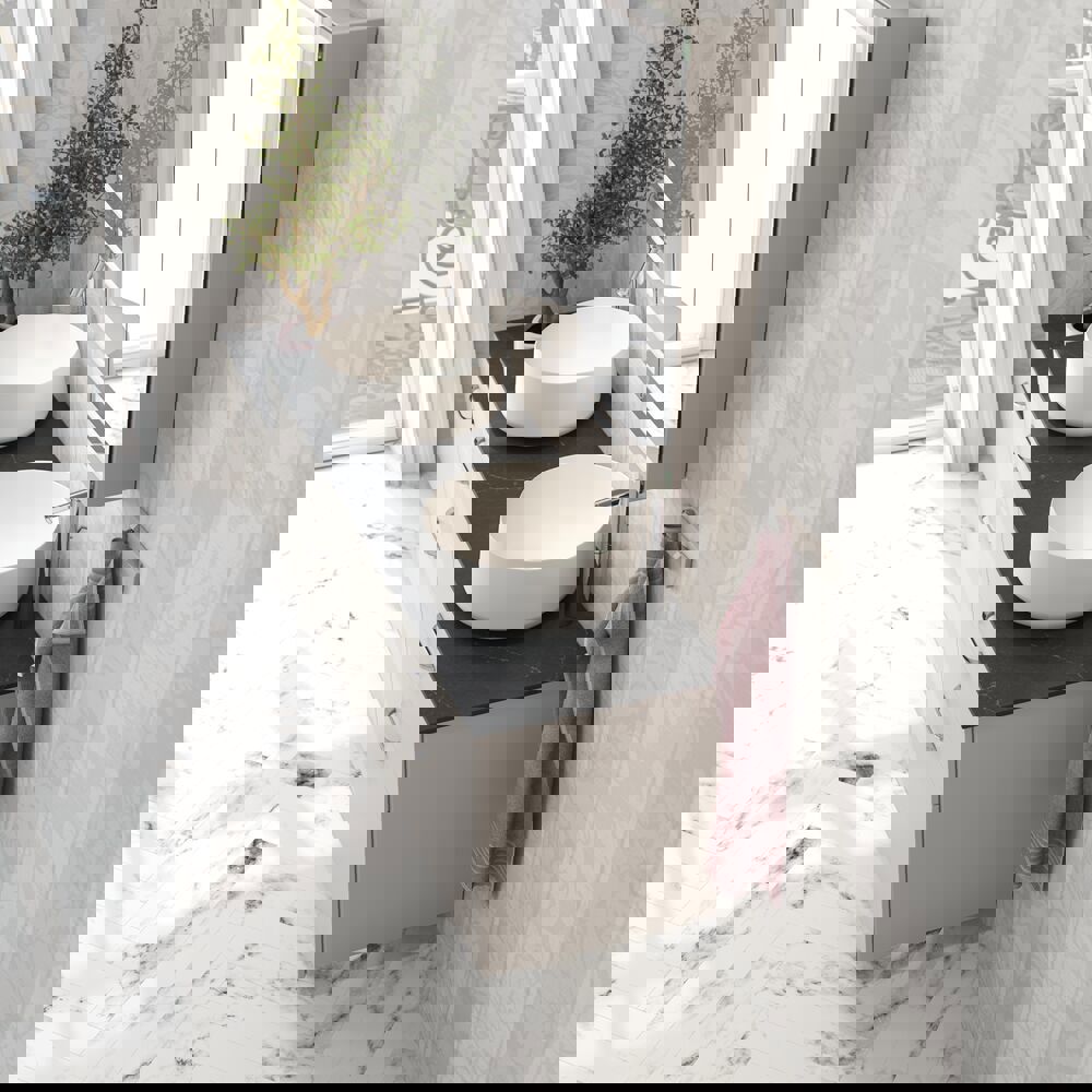 Die Dansani Calidris Unique Tischplatte aus Silestone ist eine beeindruckende Verschmelzung von Ästhetik und Haltbarkeit, die Ihr Badezimmer verändern wird. Diese Tischplatte ist nicht nur schön anzusehen, sondern besteht auch aus dem strapazierfähigen Material Silestone, das dem täglichen Gebrauch standhält und seine Schönheit bewahrt. Die Tischplatte ist in Sondergrößen erhältlich, so dass Sie die Tischplatte individuell an Ihre Bedürfnisse und Ihr Bad anpassen können. Die Farbe der Arbeitsplatte kann von der Abbildung abweichen. Wir empfehlen Ihnen daher, sich vor dem Kauf ein Muster im Fachhandel anzusehen.