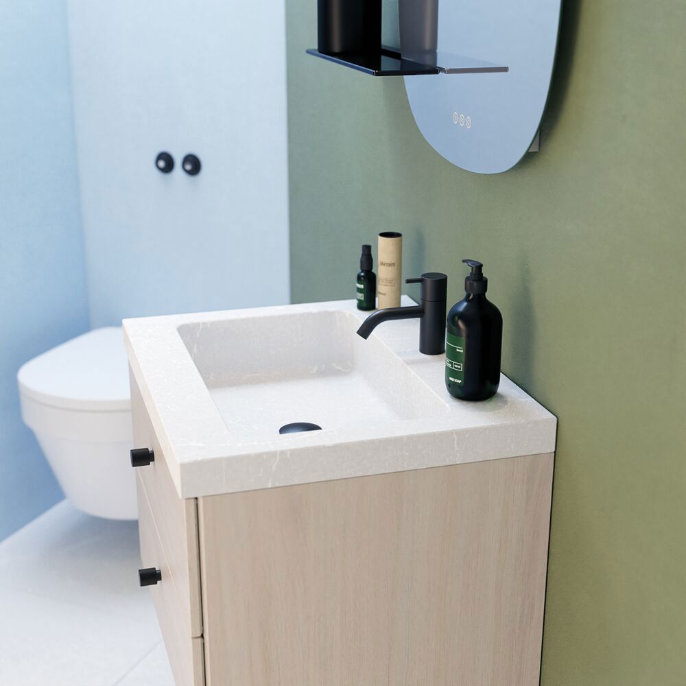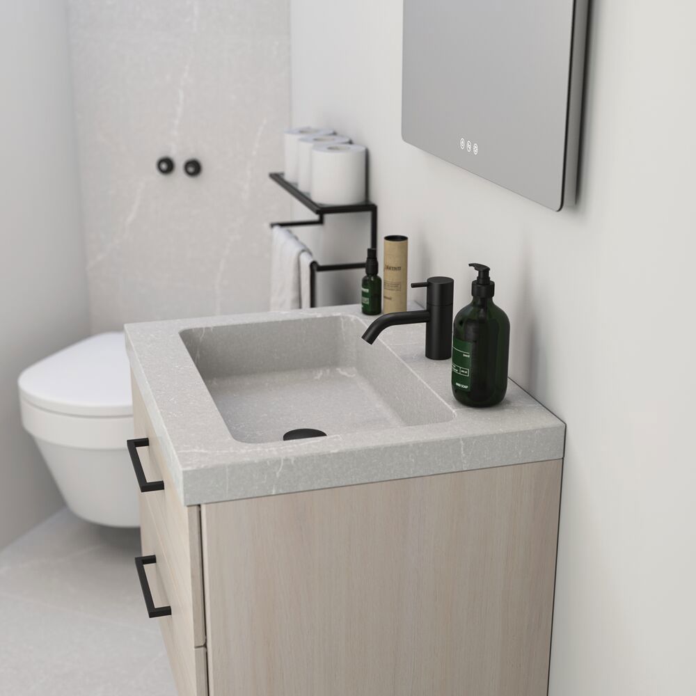 Der Dansani Calidris Unique Waschtisch verbindet Eleganz mit Langlebigkeit dank seiner Herstellung aus Silestone. Dieser Waschtisch bietet nicht nur eine außergewöhnliche Ästhetik, sondern auch eine zuverlässige Leistung. Die einzigartige Kombination aus Schönheit und Festigkeit von Silestone sorgt dafür, dass Ihr Calidris Unique Waschtisch jahrelang schön und funktionell bleibt. Dieser Waschtisch ist ein perfektes Beispiel für die Verbindung von Schönheit und Nachhaltigkeit im Baddesign. Die Farbe des Waschtisch kann von der Abbildung abweichen. Wir empfehlen Ihnen daher, sich vor dem Kauf ein Muster im Fachhandel anzusehen.