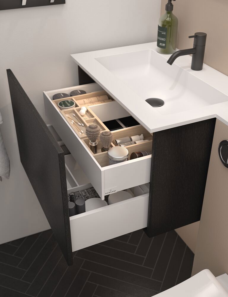 Bereichern Sie Ihr Badezimmer mit einer schönen Kombination aus Eleganz und praktischer Funktionalität mit diesem Dansani Calidris Waschtischunterschrank mit 1 Schublade. Mit seinem minimalistischen Design und den klaren Linien verleiht dieser Waschtischunterschrank Ihrem Badezimmer eine anspruchsvolle Ästhetik. Mit einer Tiefe von 40 cm bietet der Waschtischunterschrank sowohl Platz für Stil als auch für Stauraum. Die geräumige Schublade ermöglicht es Ihnen, alle Ihre Badezimmerutensilien auf elegante Weise zu organisieren und aufzubewahren. OBS: Für Produkte mit Eiche und wahlfreie Farbe fällt eine Aufpreis (BI1) an. Einmalige Berechnung, unabhängig von der Anzahl der Elemente. Überlegen Sie Ihre Badmöbel mit praktischem Zubehör auszustatten, an denen Sie täglich Freude haben werden. Wie z.B. LED-Beleuchtung in den Schubladen, Innenbeleuchtung in den Schränken, eine eingebaute Steckdose und LED-Beleuchtung unter dem Schrank inkl. Bewegungssensor und Lichtsteuerung die Ihren nächtlichen Besuch im Bad führt. Das Zubehör wählen Sie direkt mit Ihren Möbeln aus.
