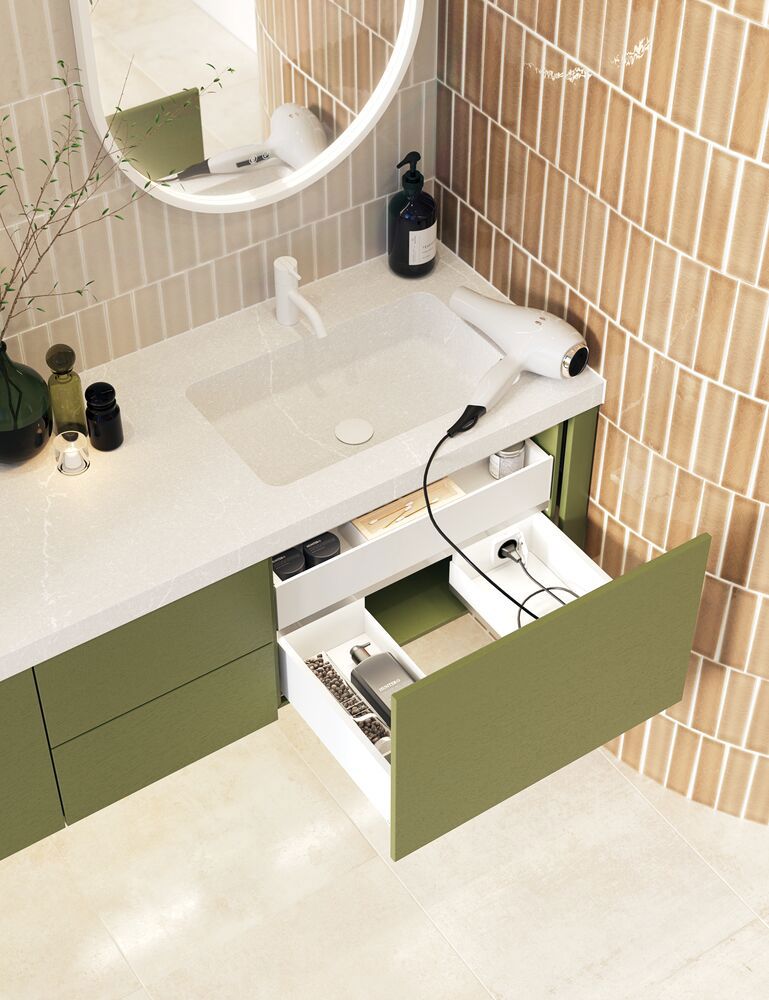 Der Dansani Calidris Waschtischunterschrank mit 1 Schublade vereint Eleganz und Funktionalität in Ihrem Badezimmer. Das minimalistische Design und die schlichten Linien des Calidris Waschtischunterschranks verleihen Ihrem Bad eine anspruchsvolle Ästhetik. Die Schublade bietet ausreichend Platz, um alle wichtigen Dinge in Ihrem Bad zu verstauen. Mit dem Fokus auf Funktionalität und Design ist der Dansani Calidris Waschtischunterschrank mit 1 Schublade die ideale Wahl für diejenigen, die ein stilvolles und gut organisiertes Badezimmer wünschen. OBS: Für Produkte mit Eiche und wahlfreie Farbe fällt eine Aufpreis (BI1) an. Einmalige Berechnung, unabhängig von der Anzahl der Elemente. Überlegen Sie Ihre Badmöbel mit praktischem Zubehör auszustatten, an denen Sie täglich Freude haben werden. Wie z.B. LED-Beleuchtung in den Schubladen, Innenbeleuchtung in den Schränken, eine eingebaute Steckdose und LED-Beleuchtung unter dem Schrank inkl. Bewegungssensor und Lichtsteuerung die Ihren nächtlichen Besuch im Bad führt. Das Zubehör wählen Sie direkt mit Ihren Möbeln aus.