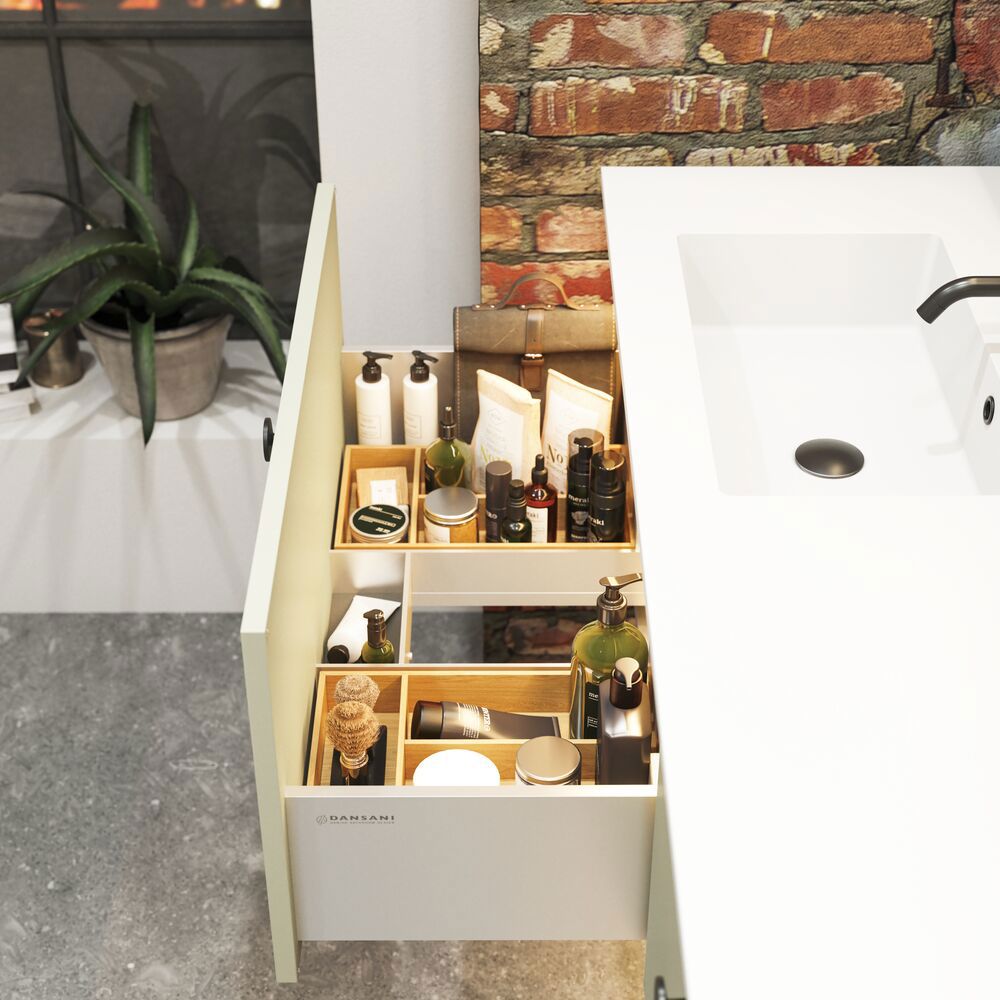 Erweitern Sie Ihr Badezimmer mit Stil und Funktionalität mit einem Waschtischunterschrank. Das elegante Design mit nur einer Schublade bietet Ihnen die perfekte Aufbewahrungslösung für Ihre Badezimmerprodukte. Mit diesem eleganten Schrank, der sich in jede Einrichtung einfügt, schaffen Sie Ordnung in Ihrem Bad. Der Waschtisch ist in verschiedenen Farben erhältlich, sodass Sie diejenige wählen können, die am besten zu Ihrem Stil passt. OBS: Für Produkte mit wahlfreie Farbe fällt eine Aufpreis (BI1) an. Einmalige Berechnung, unabhängig von der Anzahl der Elemente. Überlegen Sie Ihre Badmöbel mit praktischem Zubehör auszustatten, an denen Sie täglich Freude haben werden. Wie z.B. LED-Beleuchtung in den Schubladen, Innenbeleuchtung in den Schränken, eine eingebaute Steckdose und LED-Beleuchtung unter dem Schrank inkl. Bewegungssensor und Lichtsteuerung die Ihren nächtlichen Besuch im Bad führt. Das Zubehör wählen Sie direkt mit Ihren Möbeln aus.