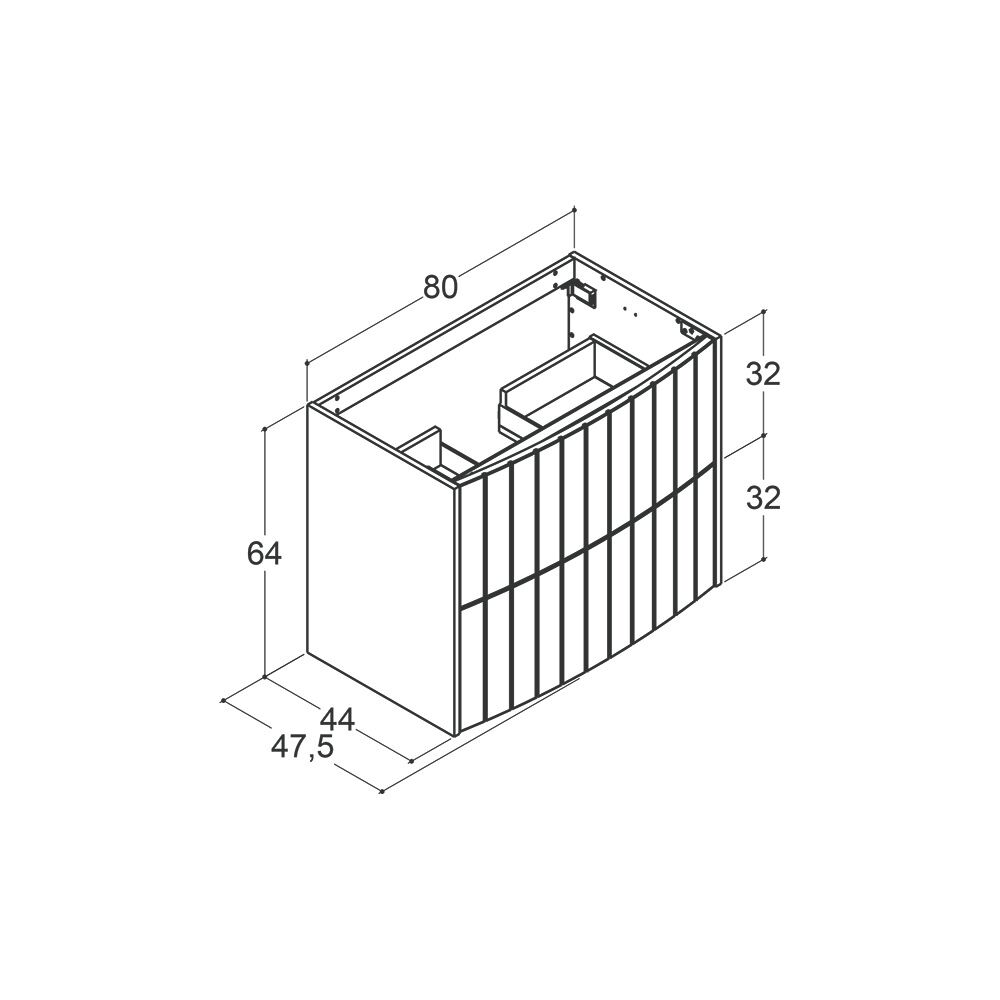 Waschtischunterschrank mit 2 Schubladen, gebogener Front mit Rillen