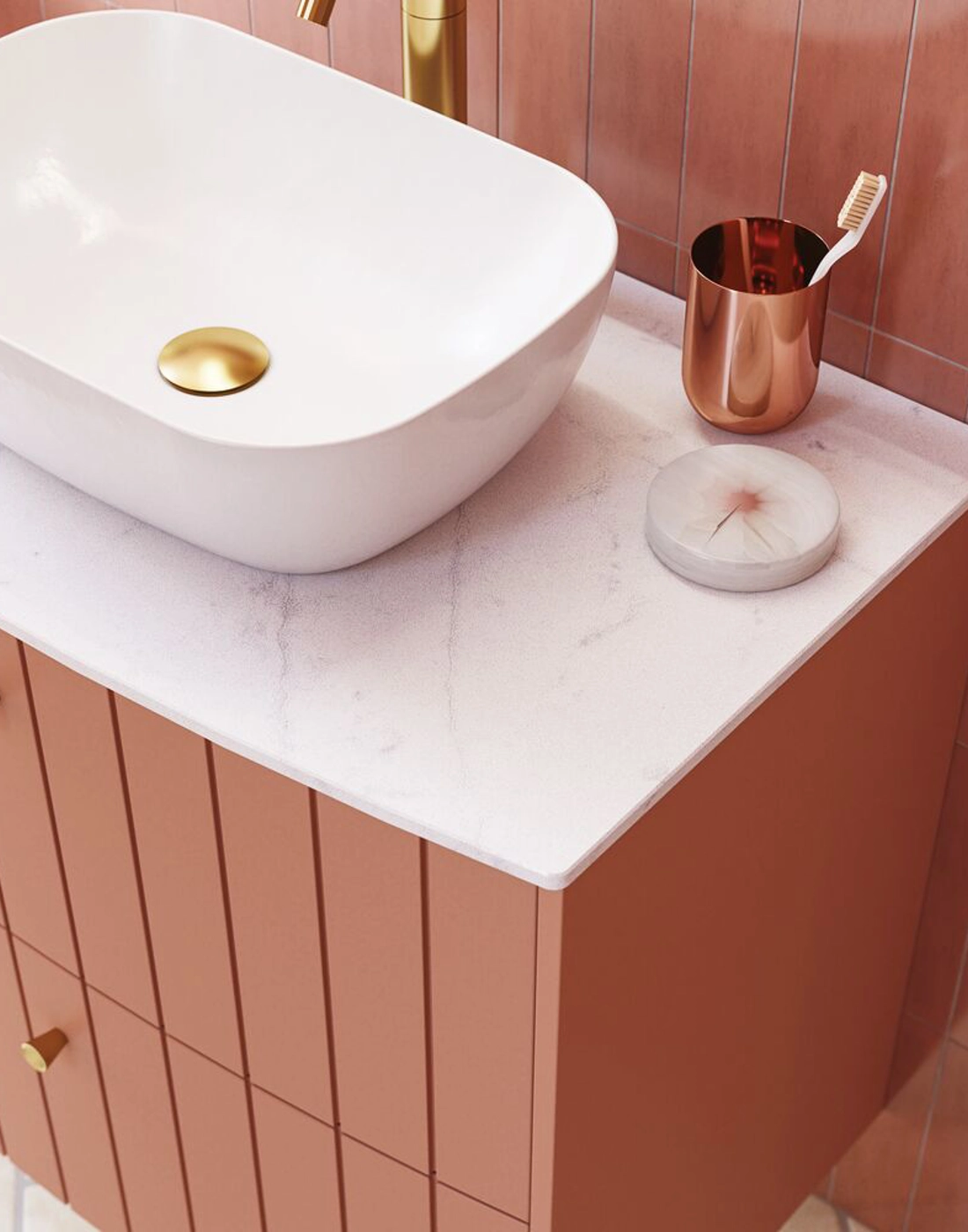 Hier finden Sie eine Übersicht über die Waschtische, die zu dem von Ihnen gewählten Waschtischunterschrank passen. Denken Sie daran, eine Tischplatte zu wählen, wenn Sie sich für ein Aufsatzbecken entscheiden.