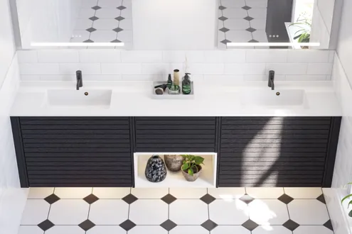 Hier finden Sie eine Übersicht über die Waschtische, die zu dem von Ihnen gewählten Waschtischunterschrank passen. Denken Sie daran, eine Tischplatte zu wählen, wenn Sie sich für ein Aufsatzbecken entscheiden.