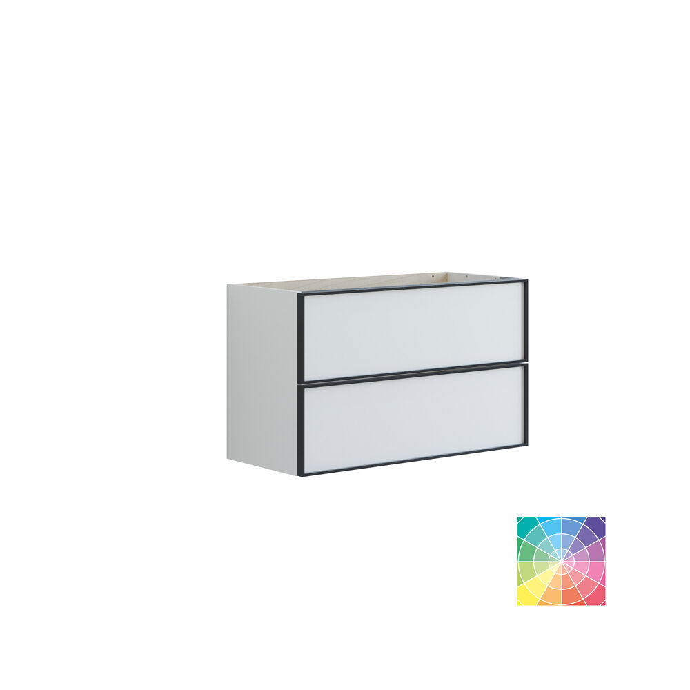 Rüste dein Badezimmer mit dem Waschtischunterschrank mit 2 geräumigen Schubladen auf. Die Tiefe von nur 35 cm bietet eine platzsparende Funktion, ohne auf Stauraum zu verzichten. Mit seinem schwarzen Aluminiumrahmen um die Schubladen erhält der Waschtischunterschrank ein exklusives Detail, das dem Raum Stil und Charakter verleiht. Unabhängig von der gewählten Farbe bringt der Waschtischunterschrank Eleganz und praktische Aufbewahrung in dein Badezimmer. OBS: Für Produkte mit wahlfreie Farbe fällt eine Aufpreis (BI1) an. Einmalige Berechnung, unabhängig von der Anzahl der Elemente. Überlegen Sie Ihre Badmöbel mit praktischem Zubehör auszustatten, an denen Sie täglich Freude haben werden. Wie z.B. LED-Beleuchtung in den Schubladen, Innenbeleuchtung in den Schränken, eine eingebaute Steckdose und LED-Beleuchtung unter dem Schrank inkl. Bewegungssensor und Lichtsteuerung die Ihren nächtlichen Besuch im Bad führt. Das Zubehör wählen Sie direkt mit Ihren Möbeln aus.