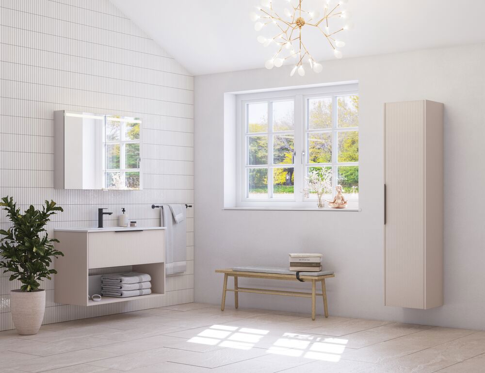 Dieser Waschtischunterschrank kombiniert Funktionalität und Stil mit seinen 2 geräumigen Schubladen und einer eleganten gestreiften Front. Erhältlich in Weiß, Sand oder Hellblau, wird dieser Schrank Ihrem Badezimmer einen modernen und einzigartigen Look verleihen. Die Schubladen bieten viel Stauraum und die Griffe sind montiert und einsatzbereit.