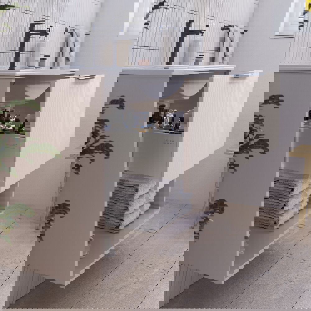 Dieser Waschtischunterschrank kombiniert Funktionalität und Stil mit seinen 2 geräumigen Schubladen und einer eleganten gestreiften Front. Erhältlich in Weiß, Sand oder Hellblau, wird dieser Schrank Ihrem Badezimmer einen modernen und einzigartigen Look verleihen. Die Schubladen bieten viel Stauraum und die Griffe sind montiert und einsatzbereit.