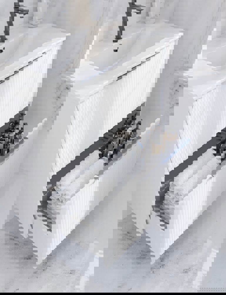 Dieser Waschtischunterschrank kombiniert Funktionalität und Stil mit seinen 2 geräumigen Schubladen und einer eleganten gestreiften Front. Erhältlich in Weiß, Sand oder Hellblau, wird dieser Schrank Ihrem Badezimmer einen modernen und einzigartigen Look verleihen. Die Schubladen bieten viel Stauraum und die Griffe sind montiert und einsatzbereit.