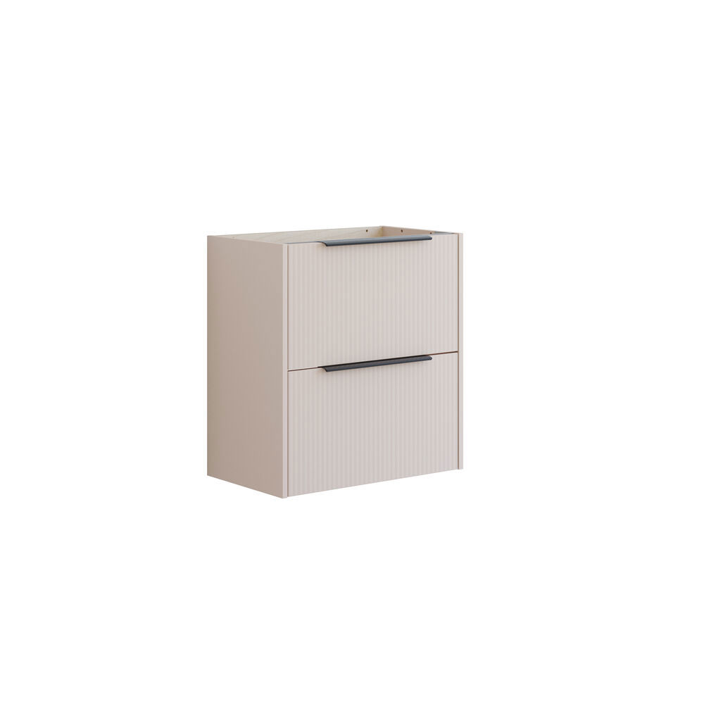 Ein vielseitiger Waschtischunterschrank in modernem Design mit zwei voll ausziehbaren Schubladen, die es leicht machen, Ordnung zu halten. Soft-Close und Qualitätsgleiter sorgen für ein leises und komfortables Benutzererlebnis bei jeder Benutzung. Das gestreifte, matte weiße Dekor verleiht dem Schrank einen leichten, strukturierten Look mit nordischem Charakter, während der mitgelieferte schwarze Griff ein scharfes optisches Detail darstellt. Eine perfekte Wahl für ein stilbewusstes Badezimmer.