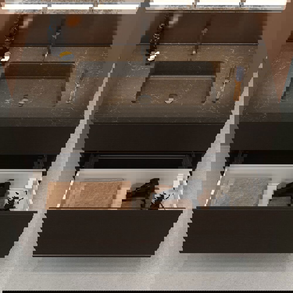 Stellen Sie sich einen Schrank vor, der sowohl schön als auch nützlich in Ihrem Badezimmer ist - das ist der Dansani Calidris Waschtischunterschrank mit 2 Schubladen. Und hier erhalten Sie sogar einen Waschtischunterschrank mit einer höheren unteren Schublade, die Ihnen viel Stauraum in Ihrem Badezimmer bietet. Der Waschtischunterschrank mit seiner minimalistisches und schlichtes Design, verleiht Ihrem Bad einen modernen Ausdruck. In den beiden großen Schubladen lassen sich nicht nur Dinge verstauen, sie sorgen auch für Ordnung in Ihrem Bad. Wenn Sie also ein ordentliches und aufgeräumtes Badezimmer wünschen, ist der Dansani Calidris Waschtischunterschrank mit 2 Schubladen die richtige Wahl für Sie. OBS: Für Produkte mit Eiche und wahlfreie Farbe fällt eine Aufpreis (BI1) an. Einmalige Berechnung, unabhängig von der Anzahl der Elemente. Überlegen Sie Ihre Badmöbel mit praktischem Zubehör auszustatten, an denen Sie täglich Freude haben werden. Wie z.B. LED-Beleuchtung in den Schubladen, Innenbeleuchtung in den Schränken, eine eingebaute Steckdose und LED-Beleuchtung unter dem Schrank inkl. Bewegungssensor und Lichtsteuerung die Ihren nächtlichen Besuch im Bad führt. Das Zubehör wählen Sie direkt mit Ihren Möbeln aus.