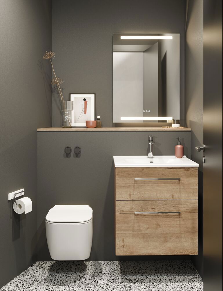 Der Waschtischunterschrank mit 2 Schubladen ist 64 cm hoch und verfügt über eine extra hohe untere Schublade, die mehr Stauraum bietet. Wählen Sie aus einer Vielzahl von Farben, die zu Ihrem persönlichen Stil passen. Mit diesem Waschtischunterschrank können Sie Ihre Badutensilien leicht organisieren und Ordnung halten. Mit dem Waschtischunterschrank mit 2 Schubladen erhalten Sie sowohl praktische Funktionalität als auch eine schöne Ergänzung für Ihr Badezimmer. Gestalten Sie Ihren Raum organisierter und eleganter mit diesem atemberaubenden Waschtischunterschrank. OBS: Für Produkte mit wahlfreie Farbe fällt eine Aufpreis (BI1) an. Einmalige Berechnung, unabhängig von der Anzahl der Elemente. Überlegen Sie Ihre Badmöbel mit praktischem Zubehör auszustatten, an denen Sie täglich Freude haben werden. Wie z.B. LED-Beleuchtung in den Schubladen, Innenbeleuchtung in den Schränken, eine eingebaute Steckdose und LED-Beleuchtung unter dem Schrank inkl. Bewegungssensor und Lichtsteuerung die Ihren nächtlichen Besuch im Bad führt. Das Zubehör wählen Sie direkt mit Ihren Möbeln aus.