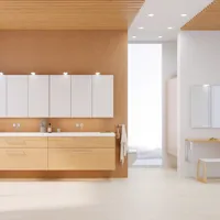 Die eleganten Linien werden an den exklusiven Waschtischen und Abdeckplatten weitergeführt, die sich leicht so gestalten lassen, dass sie perfekt in Ihr Badezimmer passen. Die Serie umfasst auch eine große Auswahl an zusätzlichen Schränken, passenden Spiegeln und verschiedenen Formen der Beleuchtung, durch die Ihr exklusives Badezimmer ungeachtet der Größe und Form ebenso leicht wie angenehm eingerichtet werden kann.