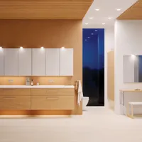 Für Spiegel und Spiegelschränke ist zusätzlich eine drahtlose Lichtsteuerung erhältlich, um andere Spiegel und Spiegelschränke sowie Decken-, Pendellampen und Illumi ebenso wie ein drahtloses Empfangsgerät zu steuern. Die Steuerung erfolgt gegenseitig, so dass zwei Spiegel oder Spiegelschränke gegenseitig die Beleuchtung steuern können. Das drahtlose System ist ein geschlossenes 2,4 GHz-System, das keinen Zugang zum Internet bzw. Router benötigt oder Interferenzen mit anderen drahtlosen Systemen erzeugt.