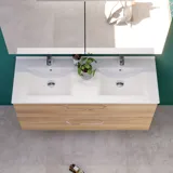 Gussmarmorplatten werden aus einem schweren Polymerharz geformt, das mit zerkleinertem Marmor vermischt wird. Anschließend werden sie mit einem dauerhaften Gelcoat überzogen. Die abschließende Oberflächenbehandlung besteht aus einer Harzschicht (Gelcoat), die den Gussmarmor vor Kratzern und den üblichen Kosmetik- und Hygieneprodukten schützt. Die Oberfläche ist hart und glatt und dank der abgerundeten Kanten sehr leicht zu reinigen.