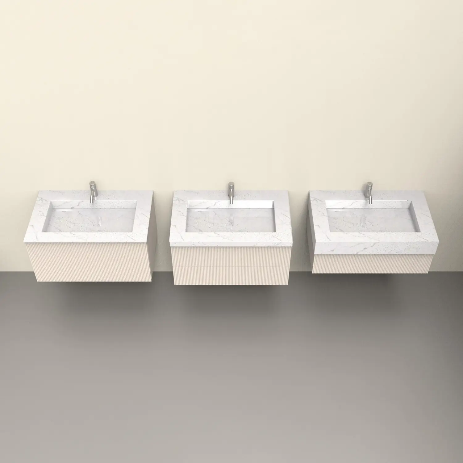 Unsere Tischplatten sind mit Ausschnitt für Tischwaschbecken und ohne Ausschnitt für Seitenschränke im Badezimmer erhältlich.
