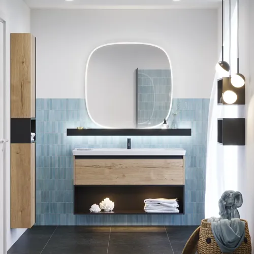 Mit einem breiteren Spiegel genießen Sie ein besseres Alltagserlebnis, denn die Spiegelfläche ermöglicht die gleichzeitige Nutzung durch mehrere Personen. Dies ist vor allem für Familien oder Paare ideal, bei denen die morgendlichen Routinen oft zur gleichen Zeit stattfinden. Wenn Sie also den nötigen Platz haben, ist ein 100-cm-Spiegel die perfekte Wahl.
